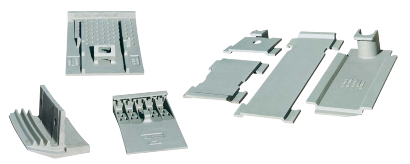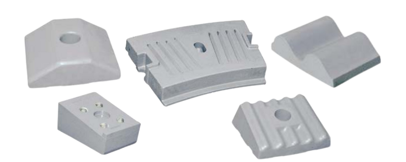 Typical applications: lining plates, dividers and grates for ball/rod mills, propeller segments for spiral classifiers, impellers and liners for vertical impact crushers, among others. -